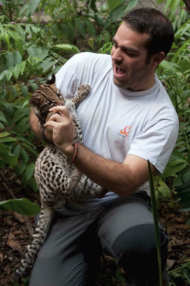 | Enrique de la Montaña haciendo buenas migas con un Ocelote |