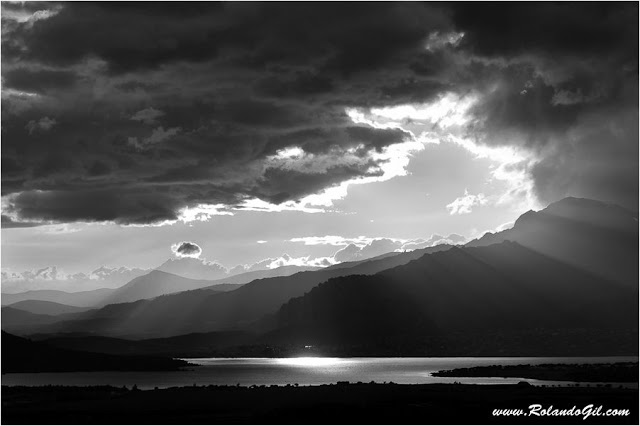Hola, el otro día atravesando la sierra de Madrid, un día de lluvia, sol y nubes, me encontré con este bonito paisaje que hoy comparto con vosotros. No suelo pasar mis fotos a blanco y negro, pero esta me lo sugería.