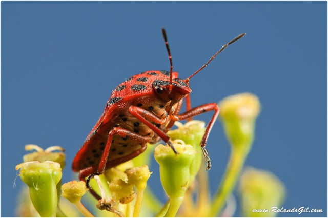 Hola, hoy por fin he podido salir al campo, está espectacular. Hay agua por todas partes y verde por las demás. Es tiempo de insectos, que por cierto, no paran de picar y de incordiar, que le vamos a hacer. Para muestra un… chinche. Otro día más.
