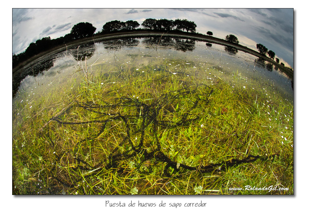 Queridos amigos, el otro día salí al campo y me fui a una charca donde el año pasado hice fotos de sapos. En esta ocasión no vi sapos ya que era por la tarde pero me encontré varias puestas de huevos que atrajeron mi atención. Después de ver varias posibilidades de fotos y de hacer varias pruebas, esta es la foto que os propongo.
