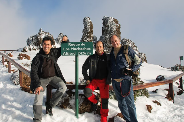he vuelto de los Masterclass de Fotonature en la Isla de la Palma, y he de decir que me lo he pasado muy bien. Me han invitado para dar una ponencia sobre fotografía de fauna y desde aquí le doy las gracias a todo el equipo de Fotonature por lo bien que me han tratado, también a Anna y Tino Soriano por contar conmigo. He podido ver a viejos amigos, concocer nuevos amigos, descubrir nuevos rincones y degustar ricos manjares. Me ha servido para salir del trabajo de Madrid y coger fuerzas para terminar febrero. Entre los viejos amigos he pasado unos días entrañables con Gonzalo Azumendi, gran fotógrafo del alma humana, donde no hay persona a su alrededor a la que no le saque una gran sonrisa, os muestro una foto de los dos junto a Manuel, nuestro guía y amigo de la isla.